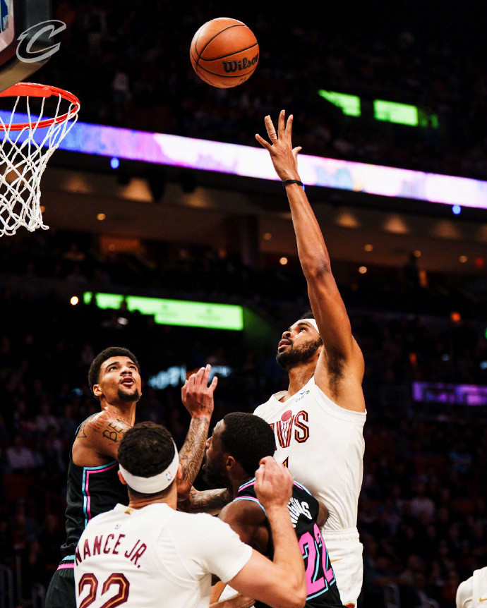 In the second quarter, Powell hit consecutive three-pointers, leading the Heat to expand their 50-38 lead by 12 points. The Cavaliers used a 7-0 offensive to close the score. Larson also hit a three-pointer to lead the Heat and then expanded the lead to 59-48. The Cavaliers made more points and gradually caught up to 66-66. The Heat scored another 3 points. The Heat were chased back by 6 points 31-37 in a single quarter. At the end of the first half, the Heat were chased and only led the Cavaliers 69-66. In the first two quarters of the game, the Heat made 10 of 23 three-pointers, and two players on the team scored in double figures. Powell made 6 of 9 and hit 4 three-pointers to score 17 points, and Fontechio scored 10 points. The Cavaliers made 7 of 26 three-pointers. Three players on the team scored in double figures. Hunter scored 12 points, Allen scored 16 points on 7 of 12 shots, and Porter Jr. scored 15 points and 5 assists on 6 of 6 shots.