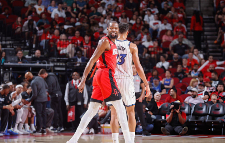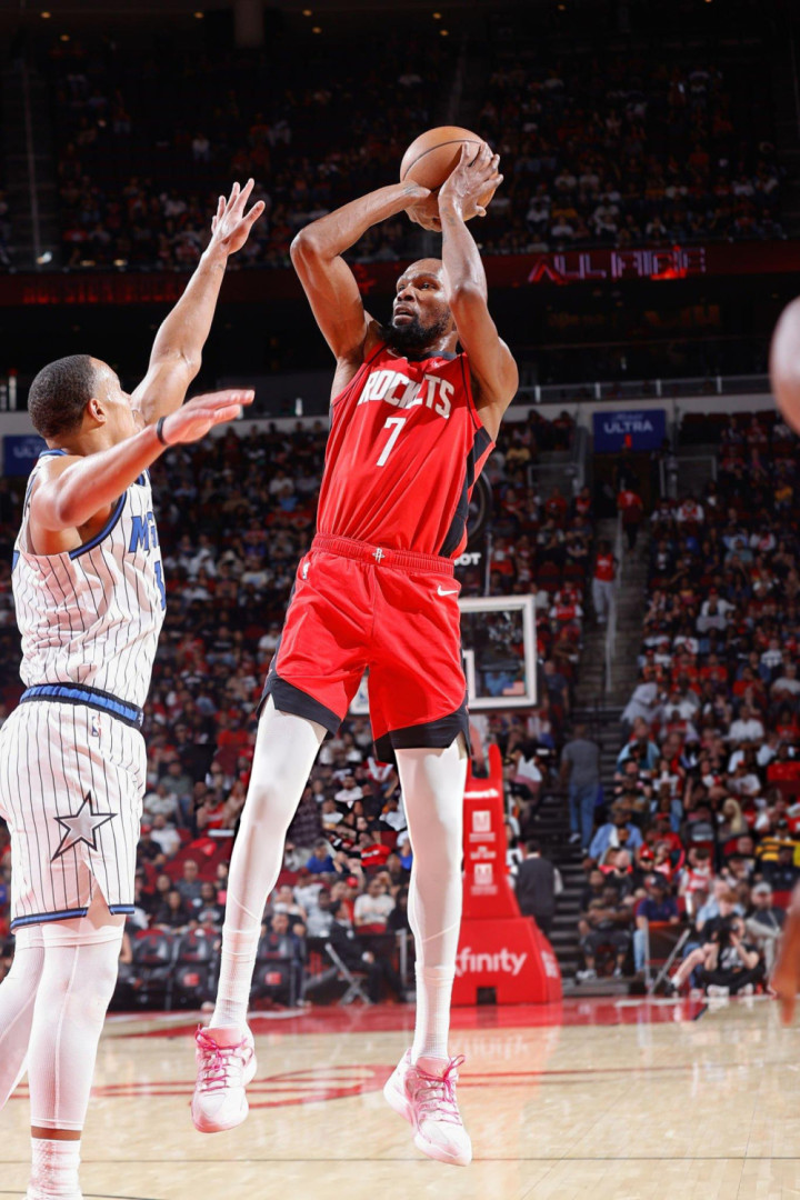 Durant showed his super mid-range shooting ability in the first quarter, scoring 9 points on 4 of 6 shots in a single quarter. In the second quarter, Durant's touch dropped slightly, and he hit two shots in a single quarter and scored 6 points. In the second half of the game, Durant showed his heroic qualities. In the third quarter, all three of his outside shots missed, but he scored consecutive mid-range shots to help the team chase points. At the last moment of the game, Durant hit consecutive key three-pointers to help the Rockets even the point difference!
