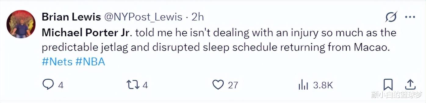 Porter Jr. also talked about the reason why he did not perform satisfactorily in the NBA China game. He has been suffering from jet lag since flying to China. He had to play before the jet lag had reversed. After returning to China, the jet lag naturally returned to his condition.