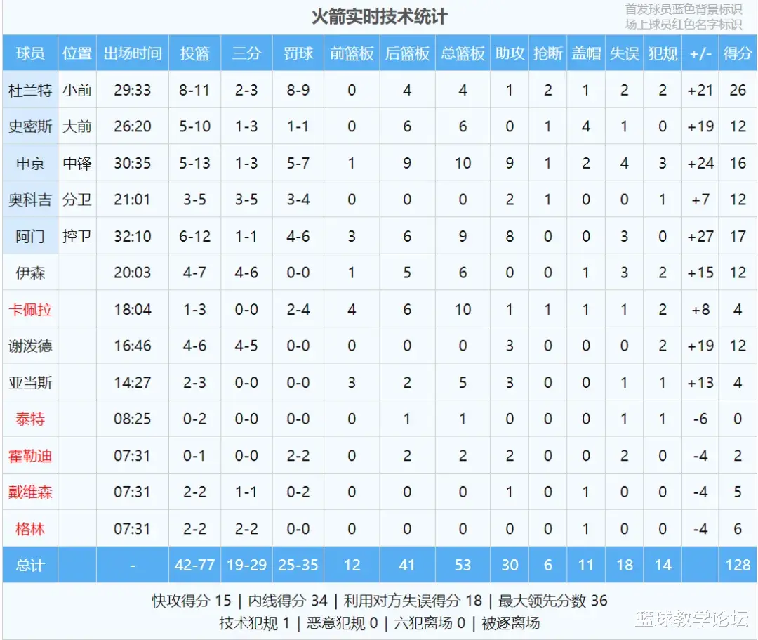 Seven members of the Rockets team averaged double figures per game: Jabari Smith Jr. averaged 15 points, 5.2 rebounds, 1.4 assists, 1.4 steals and 1.4 blocks per game, with three shooting percentages: 43.5%, 36.7%, 90.9%. Amen averaged 15 points, 6 rebounds, 5.8 assists, 0.8 steals and 2.6 turnovers per game, with three shooting percentages: 46.7%, 9.1%, 69.2%. A total of 1 of 11 three-pointers!