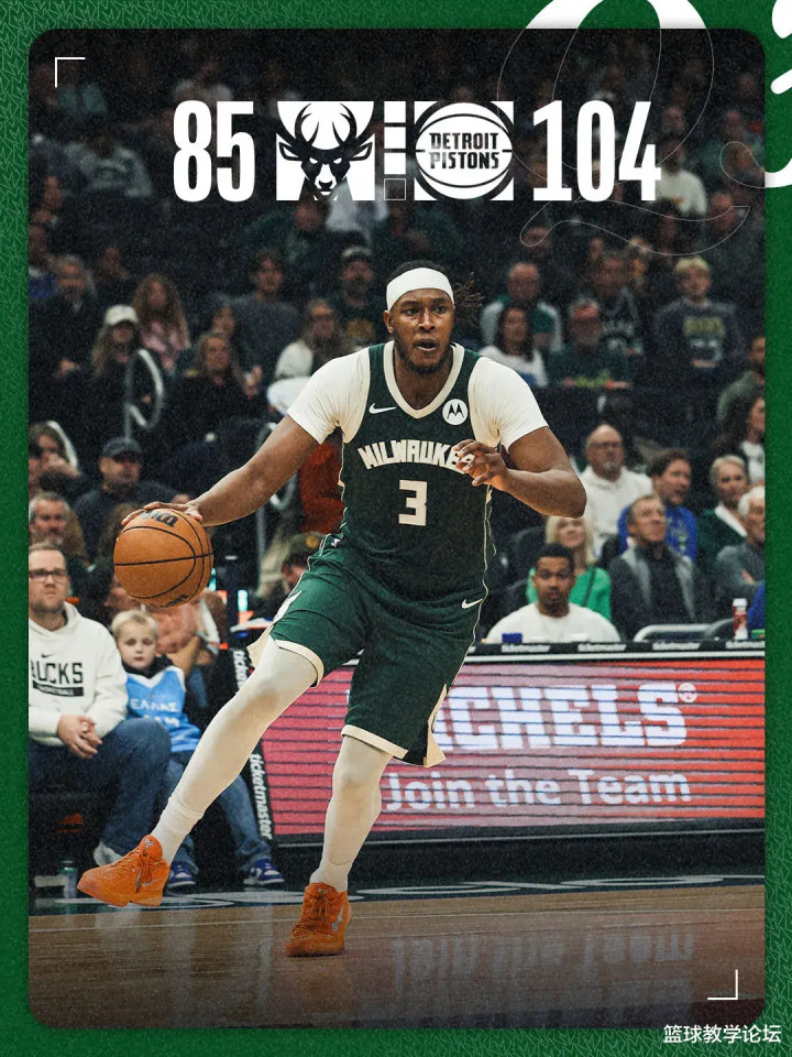 The Pistons went 14-0 in the second quarter, and the point difference instantly reached double digits. At the end of the first half, the Pistons led 69-52 by 17 points. Bucks new aid Turner seemed to be sleepwalking, scoring 0 points, 2 rebounds and 2 blocks on 0-for-2 in the half. In the third quarter, Turner regained his touch and scored 11 points on 4 of 6 shots in a single quarter. The Bucks scored 33 points in the third quarter, but unfortunately lost to the Pistons by 2 points in a single quarter.