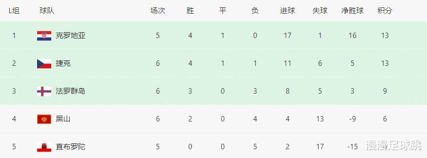 After this victory, the Faroe Islands' points reached 9 points, second only to Croatia and the Czech Republic in the same group with 13 points, temporarily ranking third in the group. In the past 4 rounds, they have 3 wins and 1 loss, and the only defeat was a 1-goal defeat against Croatia away from home. They have already beaten Gibraltar twice, and now they have defeated Montenegro. They have every chance to reach second place in the group and win the World Cup play-offs. It would be exciting if they take first place!