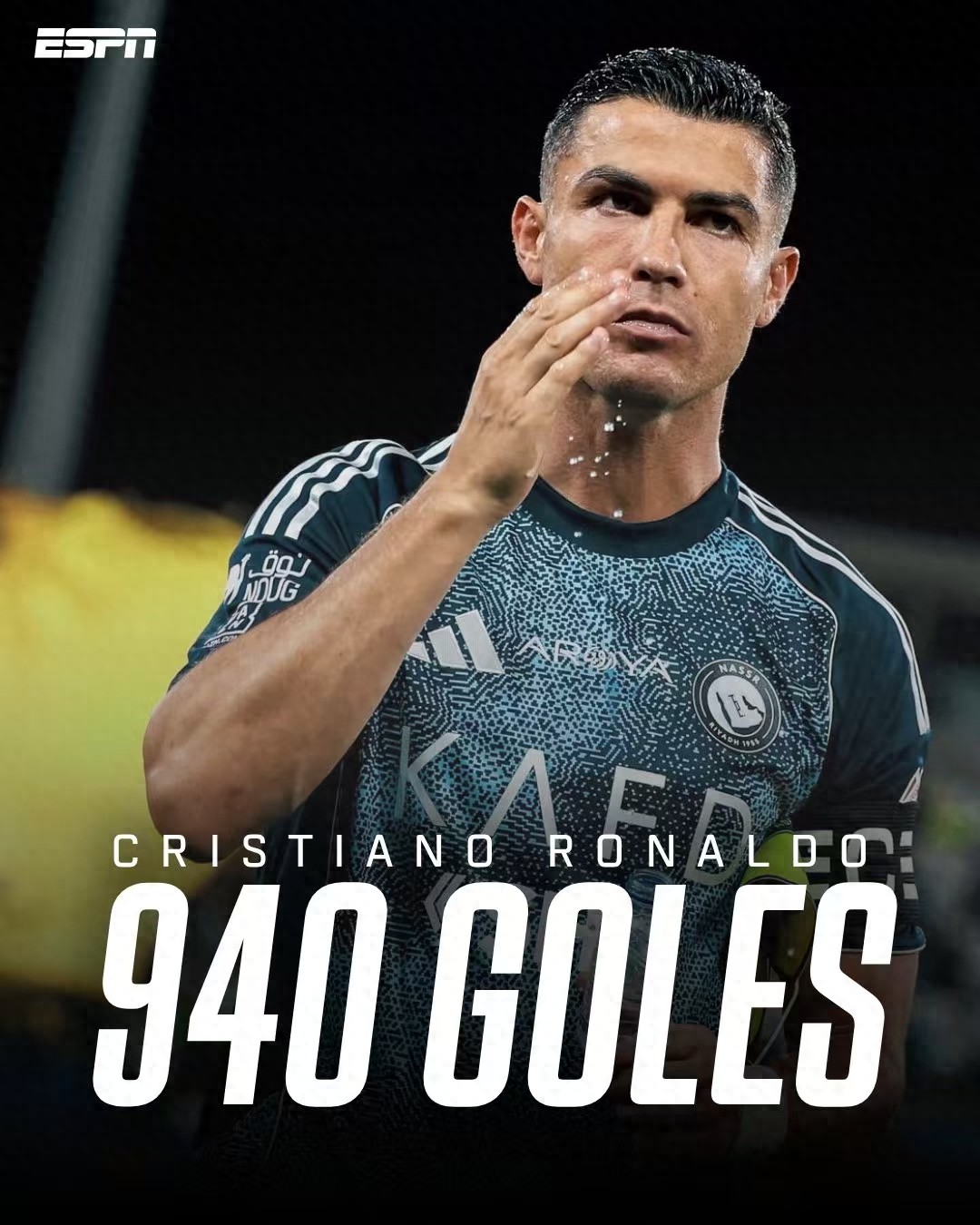 The last inventory of Ronaldo's 940 goals: Portugal Sports 5 goals, Manchester United 145 goals, Real Madrid 450 goals, Juventus 101 goals, Riyadh victory 101 goals, and Portugal 138 goals.