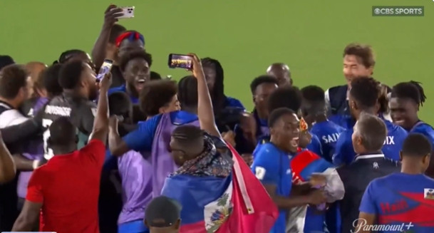 After the game, Haitian players gathered together to wait for the result of Costa Rica vs Honduras. After the game, the Haitian players celebrated wildly.