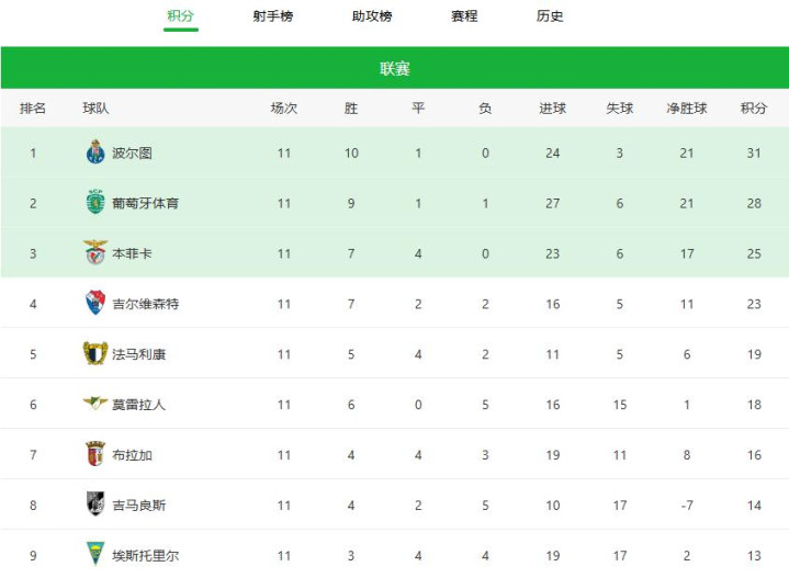 Sporting Lisbon, or Sporting CP, which has been strong in recent years, ranked second in the standings with 28 points, 9 wins, 1 draw and 1 loss. As for their low profile, they have recently been criticized for being taken care of on the field. There is nothing they can do about it. Mourinho's return has made the Portuguese Super League the focus of Europe. Every move of the old man can become news and a weather vane.