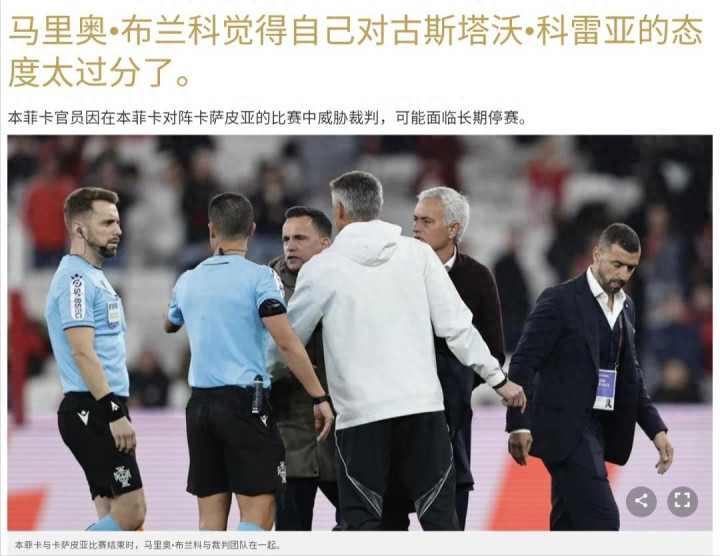 Mourinho is safe and sound. Even though he argued with the referee after the game and criticized VAR, the Portuguese legend still gained the respect of more people. Currently, the Disciplinary Committee of the Portuguese Football Federation (FPF Conselho de Disciplina) has imposed a 20-day suspension on the emotional Benfica director of football Mário Branco because he made strong criticisms of the refereeing team after the match between Benfica and Casa Pia.
