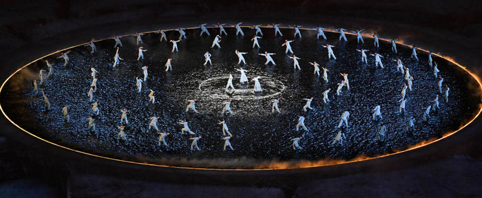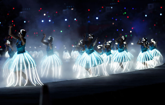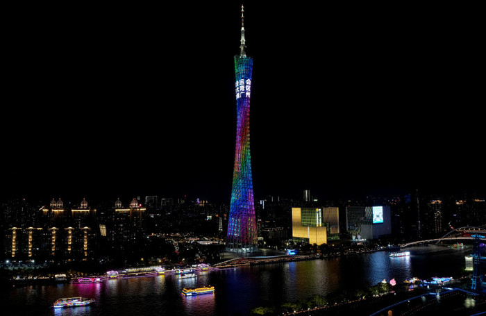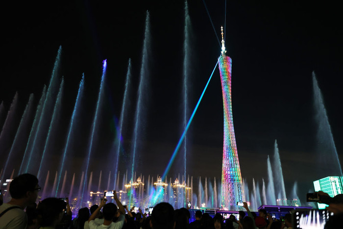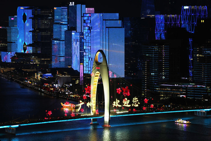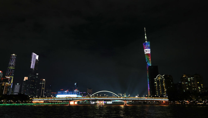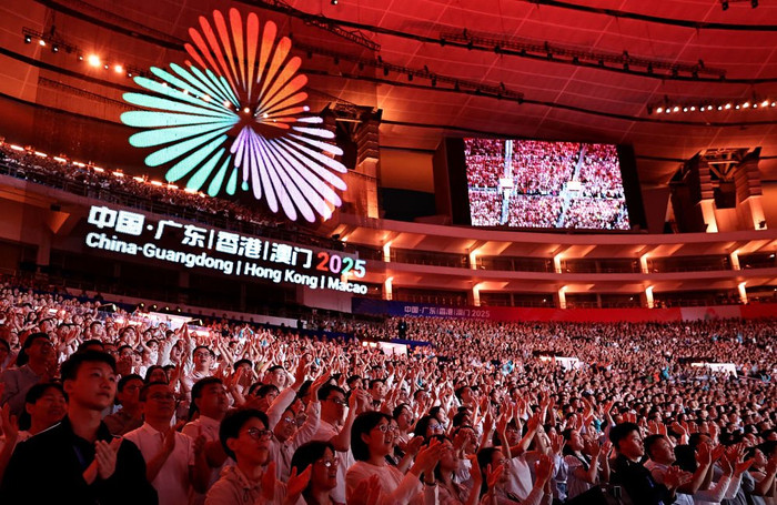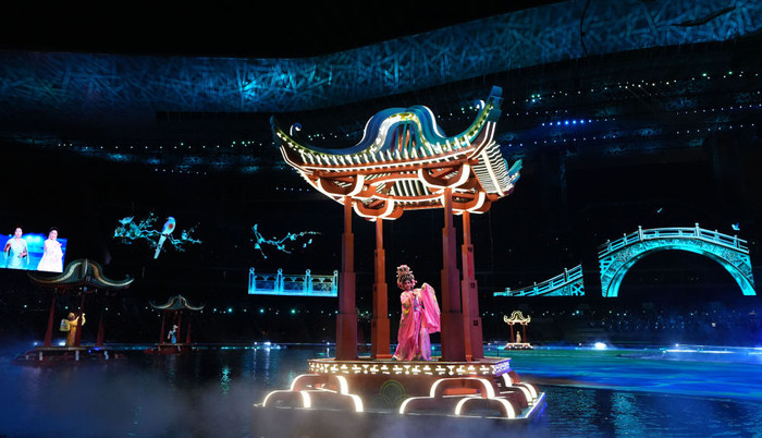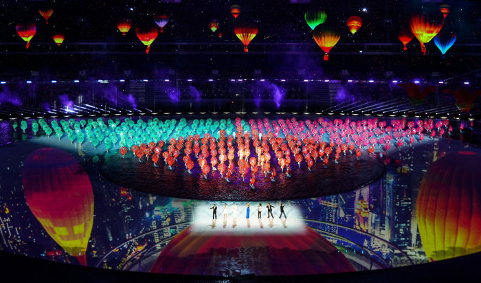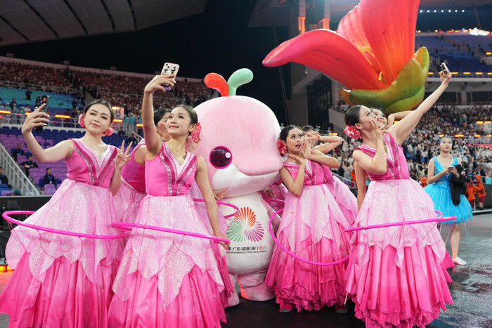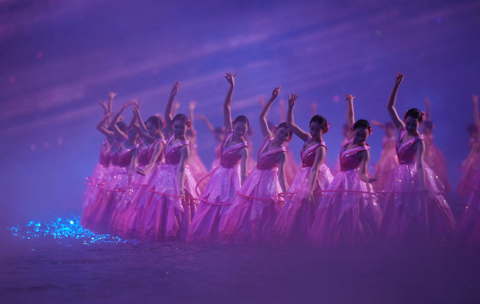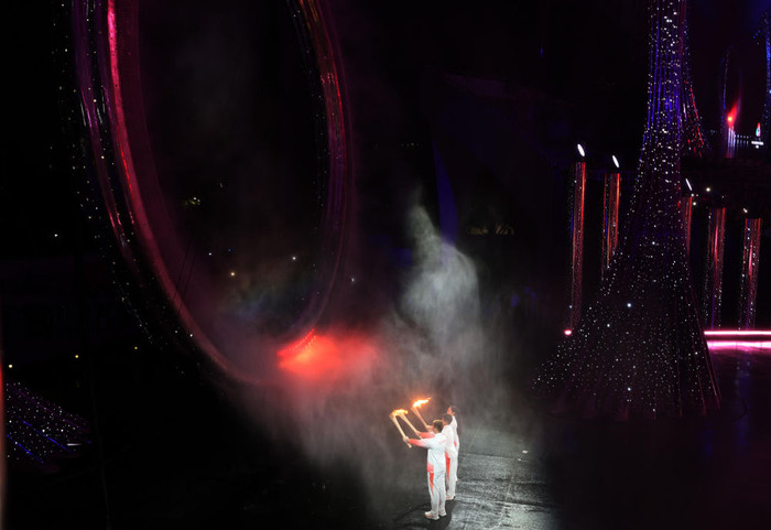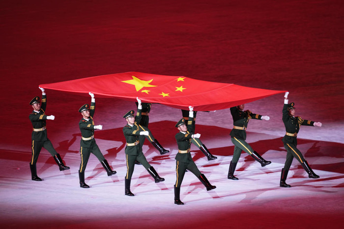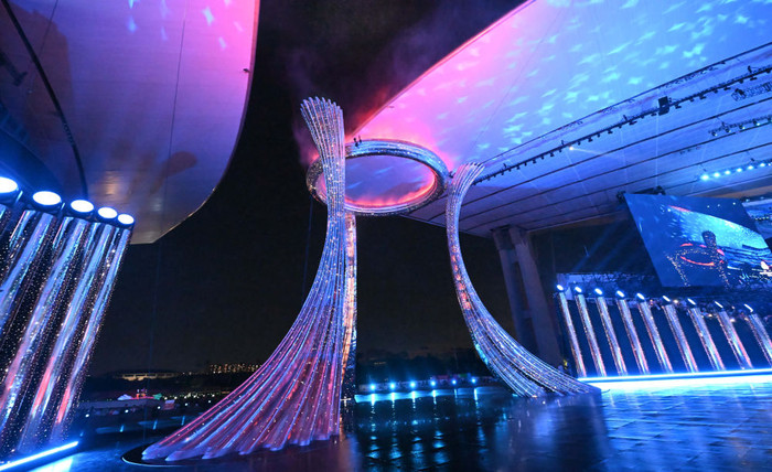 This is the national flag of the People's Republic of China (center), the flag of the Games of the People's Republic of China (left) and the flag of the 15th National Games taken at the opening ceremony. Photo by Xinhua News Agency reporter Deng Hua