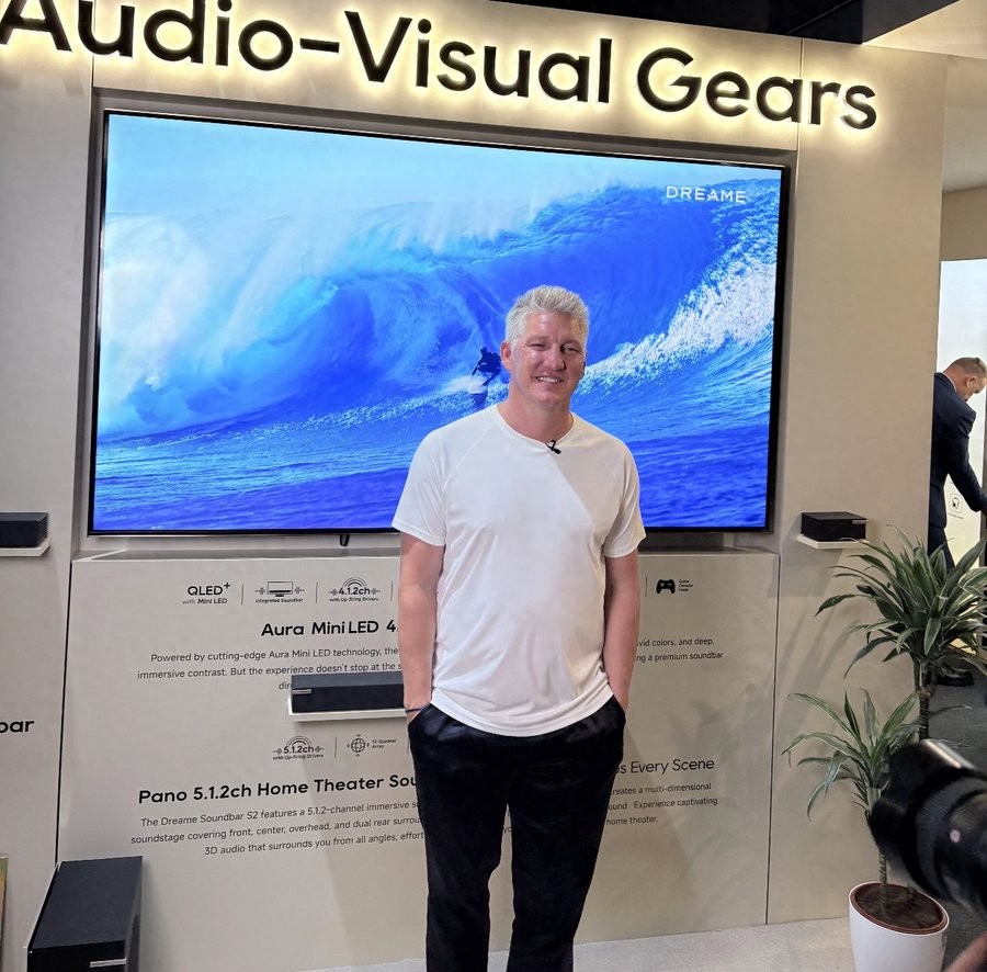 At the Zhuimi Technology booth at the 2025 International Consumer Electronics Exhibition (IFA), a cross-border interaction between technology and sports attracted the attention of the audience. The legendary superstar in the international football world "Pig " Schweiingsteiger personally visited the newly released Aura Mini LED 4K TV S100. The scene where this star, who once dominated the green field, stopped in front of the TV to concentrate on experiencing, instantly ignited the enthusiasm of the audience. Fans and technology enthusiasts raised their phones to record this wonderful moment.