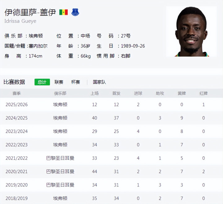 After becoming famous at Everton, Guy came to Paris Saint-Germain for three seasons and returned to the familiar Goodison Park in the summer of 2022. As a defensive midfielder with outstanding interception ability, Gay is very suitable for the mid-to-lower Premier League teams with a straight-forward style. After Moyes returned, he restarted the pragmatic route. At the age of 36, the Senegalese is still the "cornerstone" of the Toffees.