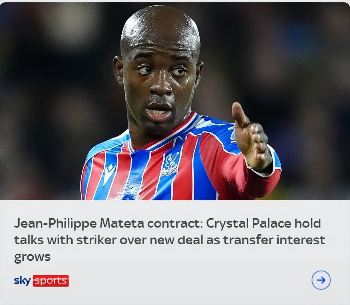 According to Sky Sports news, Crystal Palace has started contract renewal negotiations with Matetta. The two parties have not yet reached an agreement, but Crystal Palace feels very relaxed. The forward's contract expires in 18 months.