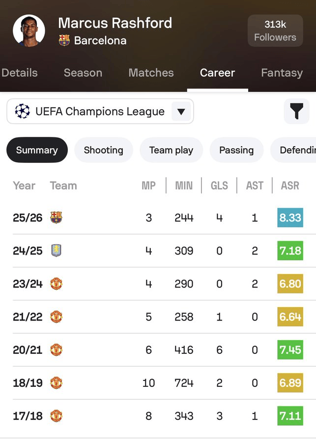 Hupu News on October 22, Barcelona defeated Olympiakos 6-1 in the Champions League stage. Rashford scored 2 goals in the game.