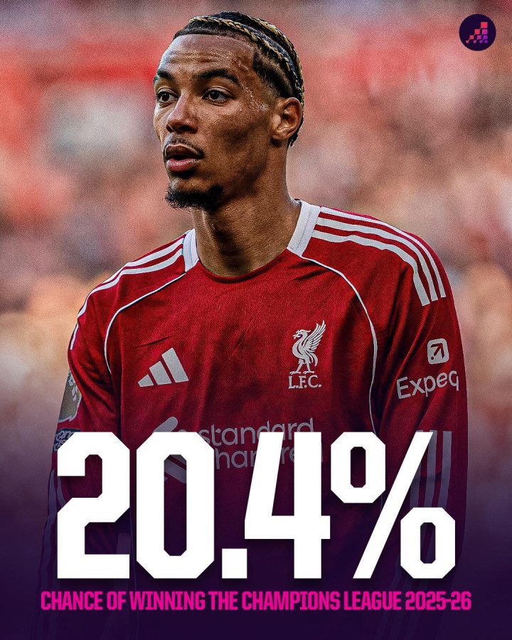 OPTA s Champions League chance this season: Liverpool 20.4% ranks first, Arsenal 16%