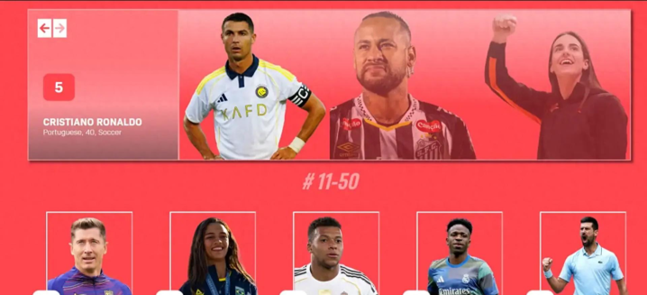 - Cristiano Ronaldo (5th, Riyadh victory): A solid example of evergreen football in 20 years! With an unparalleled career length, a huge fitness business empire and world-class recognition, at the age of 40, he is still firmly ranked as the number one businessman in the football circle.