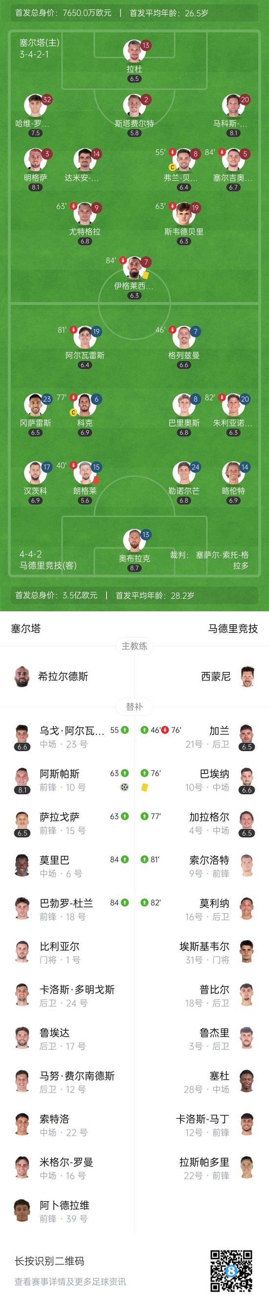 In the 41st minute, Lenglet recklessly pulled someone behind him and got his second yellow foul. Atletico Madrid was sent off. In the 69th minute, Celta attacked from the right, Mingeza crossed to the front of the goal, Iglesias shot and was saved, Aspas followed up and shot into the net, Celta equalized 1-1 ↓